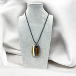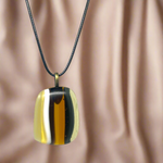 Expertly crafted, this unique fused glass pendant is a one of a kind piece that will elevate any ensemble. Handmade with care, its intricate design is sure to catch the eye and add a touch of elegance to your style. Comes with a complimentary chain for easy wear.