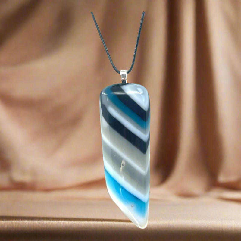 Expertly crafted, this unique fused glass pendant is a one of a kind piece that will elevate any ensemble. Handmade with care, its intricate design is sure to catch the eye and add a touch of elegance to your style. Comes with a complimentary chain for easy wear.