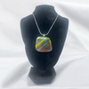 Expertly crafted, this unique fused glass pendant is a one of a kind piece that will elevate any ensemble. Handmade with care, its intricate design is sure to catch the eye and add a touch of elegance to your style. Comes with a complimentary chain for easy wear.